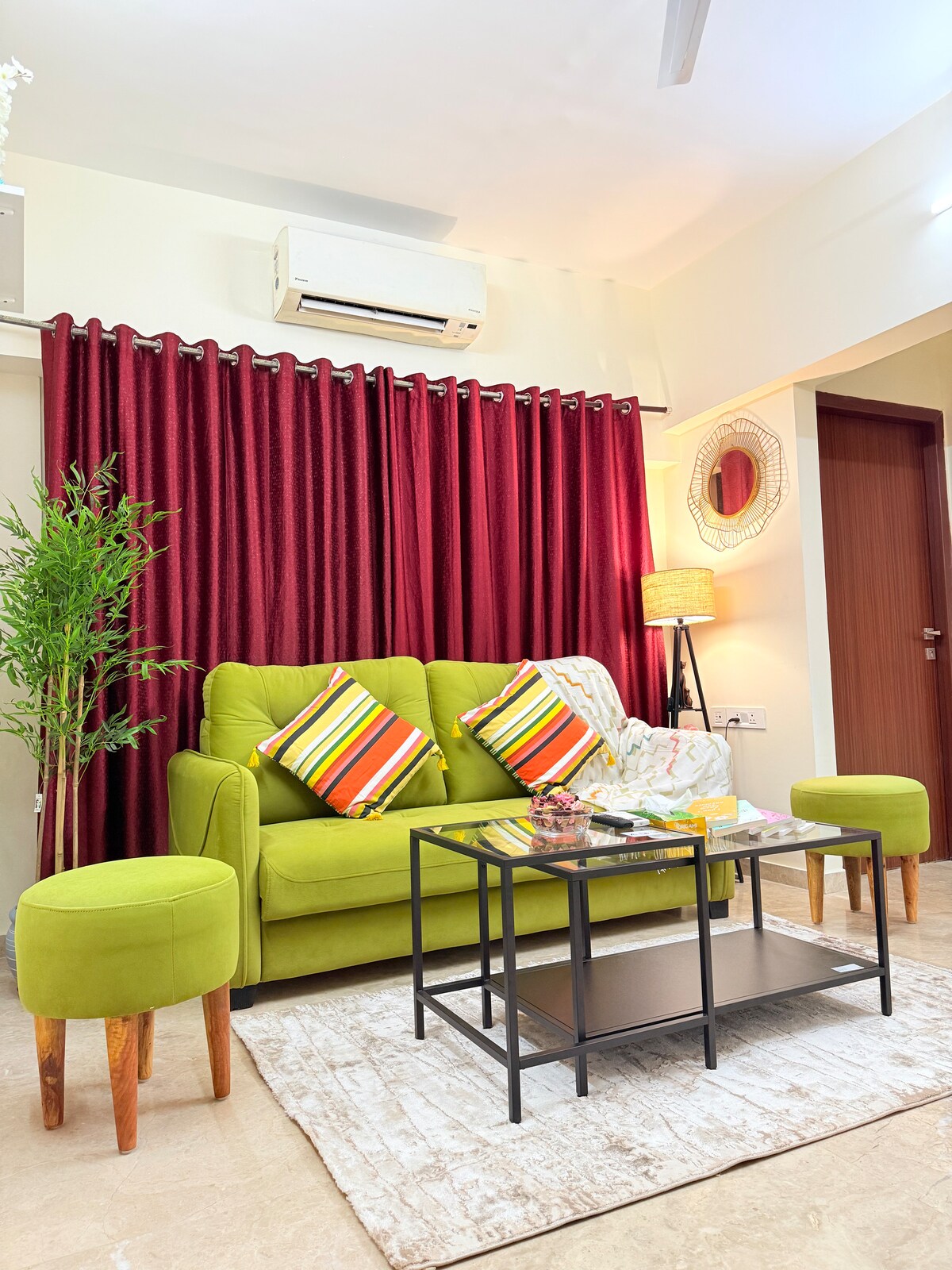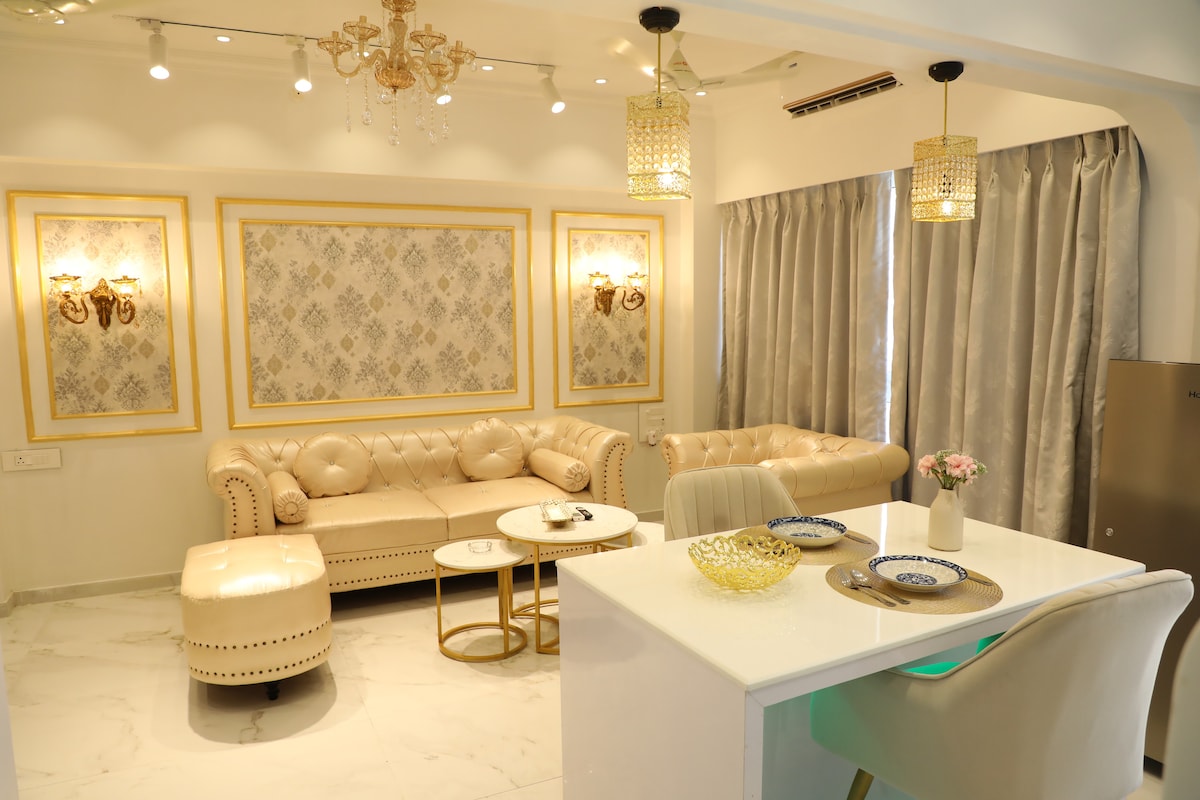 This 2BHK space has recently undergone renovations and offers a range of amenities, including air conditioning, a television, high-quality memory foam beds, and luxurious furniture. Additionally, it features a spacious balcony for your relaxation. Also kindly note that the way to the 2nd bedroom is to go through the first bedroom. There is no separate pathway. We have breakfast available at ala carte prices. Kindly send me a message to explore breakfast options.