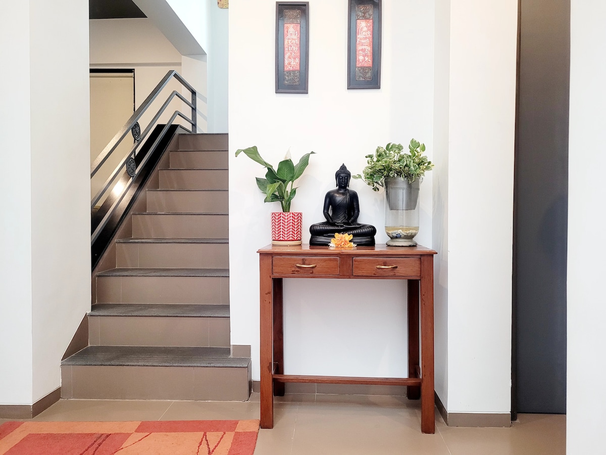 Cozy homely place that is centrally located, in close proximity to International airport, domestic airport, Railway station, Bus depot , religious places, schools, shopping malls, supermarket, restaurants and more. This place has all the amenities needed for a long stay including work from home, air-conditioning , fully equipped Kitchen, Parking is available for two wheeler. Please note that the home is on the 2nd floor , however the steps are convenient to climb .