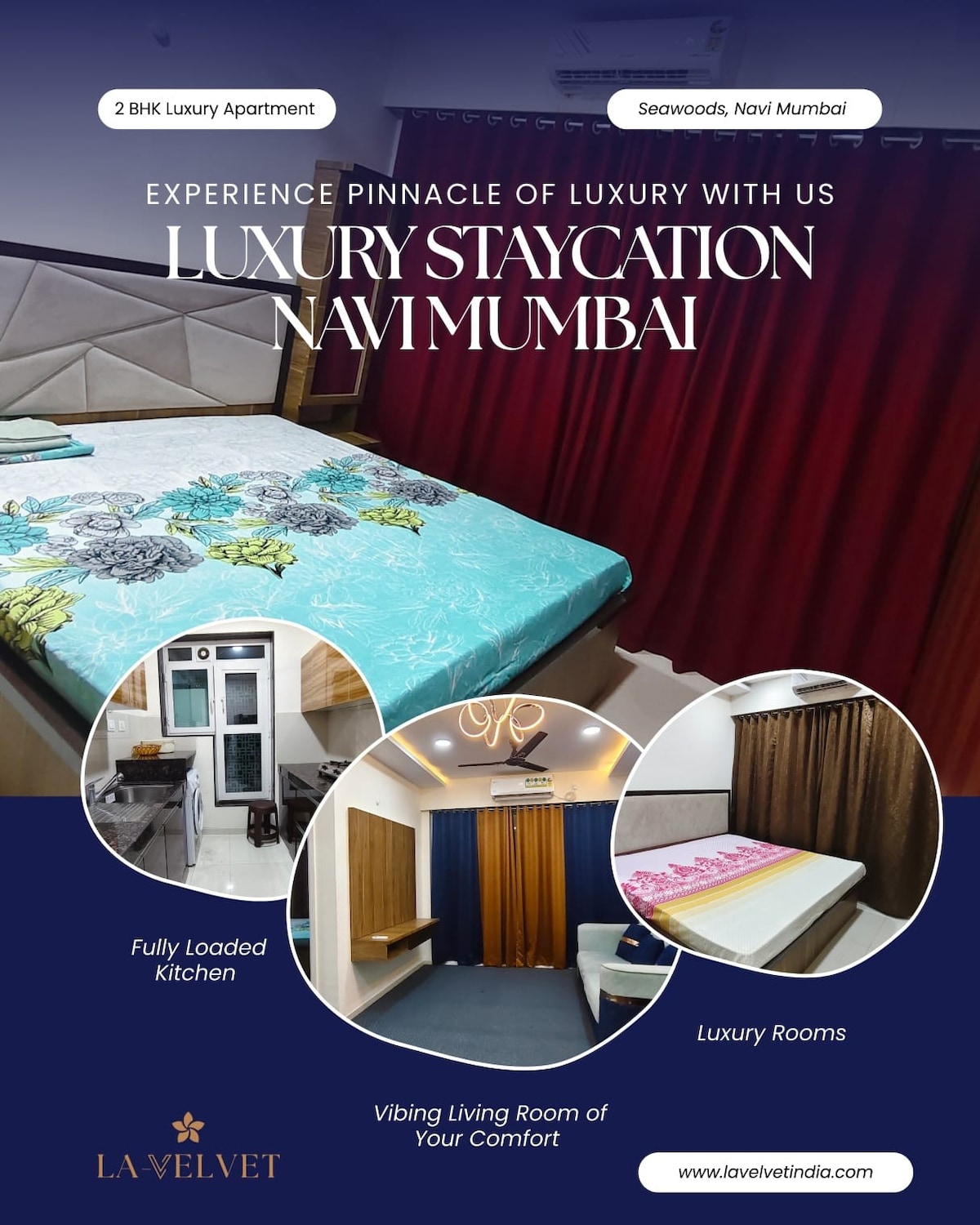 ✨Roy Bari Seawoods by Satya Stays is a luxurious 3BHK property in Navi Mumbai, at the most premium location, right infront of Seawoods Grand Central Mall. 🌅 Perched on the 9th floor, this stunning apartment offers breathtaking views of Seawoods Grand Central Mall, LnT, the hills, Atal Setu, and the creek – truly your HOME AWAY FROM HOME 🏡 Fully equipped with modern amenities, this space is designed for comfort, elegance, and memorable stays.