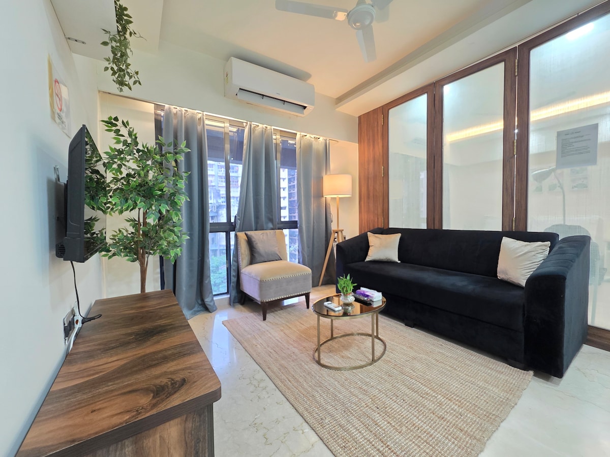Wake up to rhapsody of chirping birds, gentle sea breeze & magnificent sunrise surrounded by lush greenery. Silver BEACH -5 min Walk Aksa BEACH-15 min drive Smart TVs , AC, Wi-Fi ,a Bath tub. Spend cozy afternoons in the balcony with a book and a cup of coffee ,amidst greenery . Stroll on the beach , Explore beautiful landscaped gardens , Pool & Quaint cafe of the luxury apartment complex , Set in peaceful & tropical neighbourhood of Madh Island Zomato Swiggy & Blinkit delivers