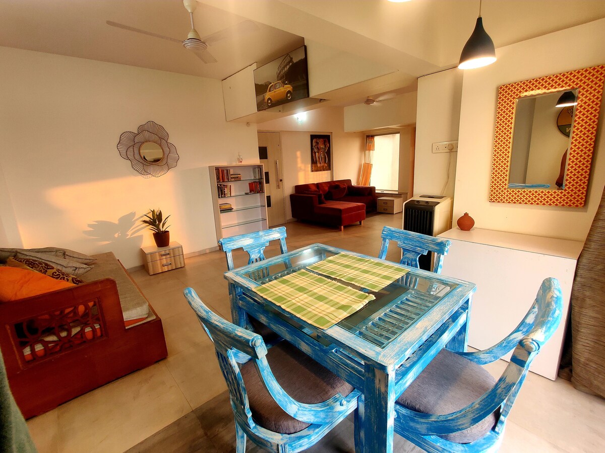 Wake up to rhapsody of chirping birds, gentle sea breeze & magnificent sunrise surrounded by lush greenery. Silver BEACH -5 min Walk Aksa BEACH-15 min drive Smart TVs , AC, Wi-Fi ,a Bath tub. Spend cozy afternoons in the balcony with a book and a cup of coffee ,amidst greenery . Stroll on the beach , Explore beautiful landscaped gardens , Pool & Quaint cafe of the luxury apartment complex , Set in peaceful & tropical neighbourhood of Madh Island Zomato Swiggy & Blinkit delivers
