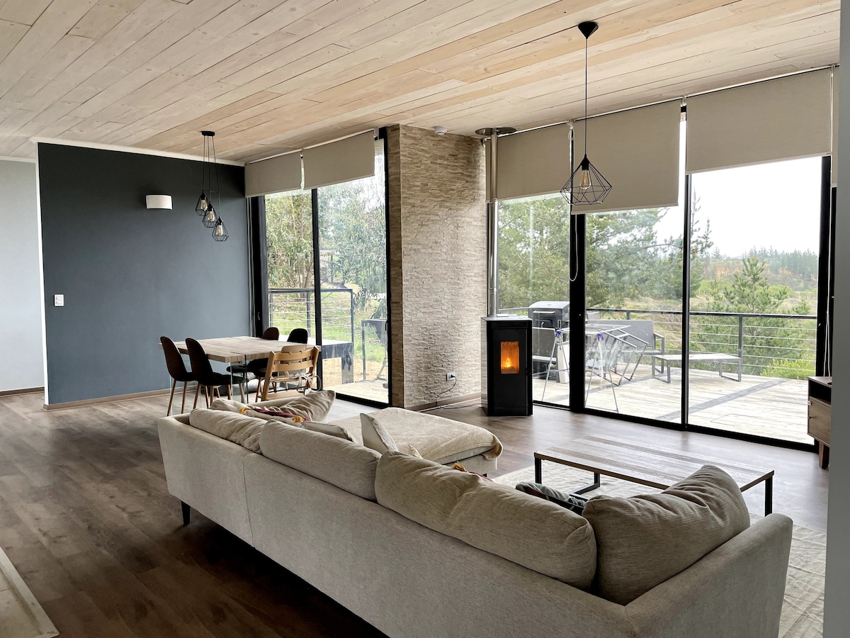 Casa full equipada en condominio cerrado ideal para familias. Internet satelital de alta velocidad. A 3 minutos en auto de la playa de Pupuya y a 15 de Matanzas. Oficina independiente para trabajar. (2 escritorios) Bosca a pellet automática en sala central y estufas eléctricas en habitaciones. Cocina equipada con cafetera y thermomix. La casa cuenta con 3 habitaciones 1 habitación en suite con cama matrimonial 1 habitación con cama matrimonial 1 habitación con una cama y una cuna para bebe.