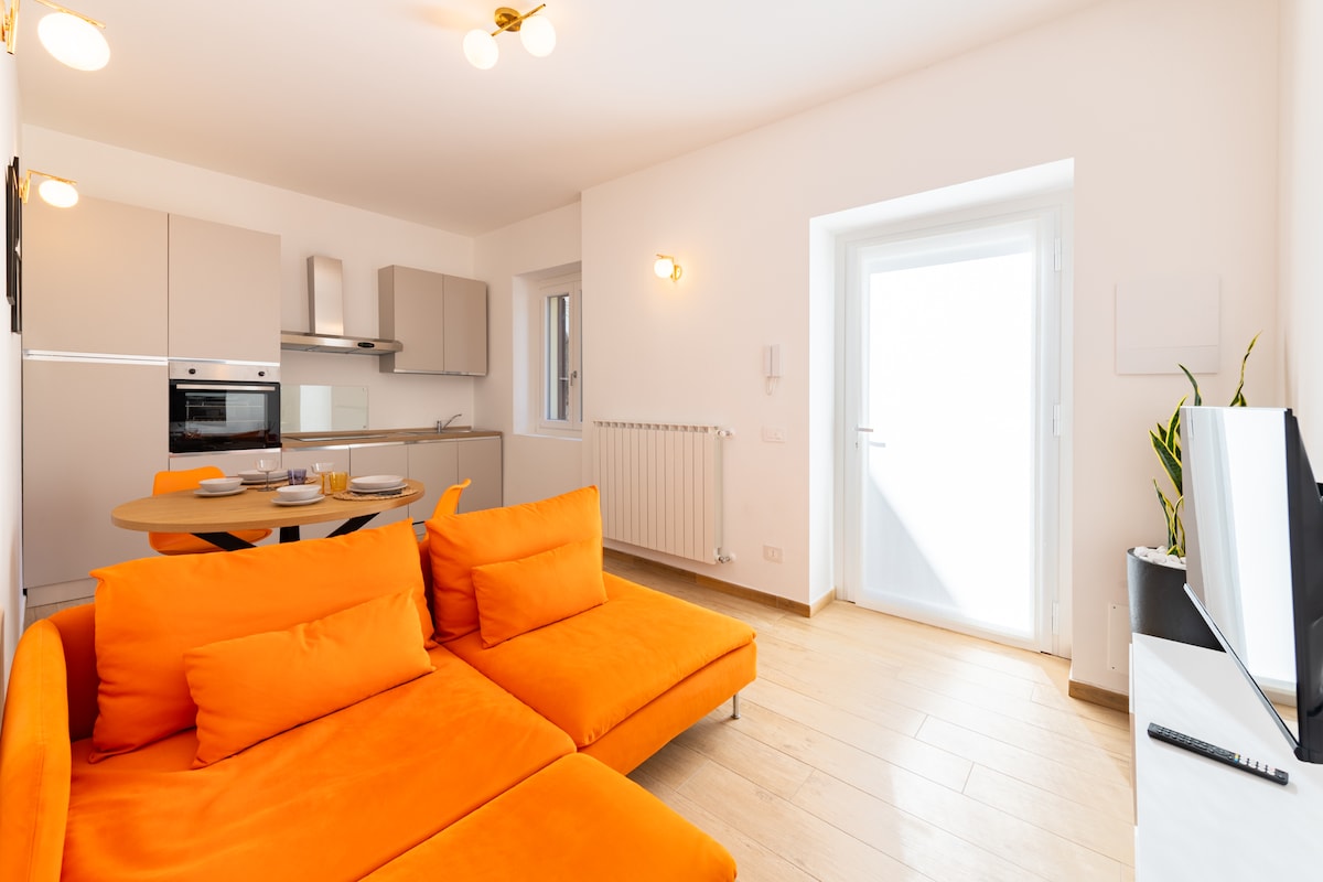 Elegante bilocale luminoso, Corallo apartment è composto da: -Open space sala e cucina, soggiorno con divano angolare, smart tv e WI-FI -Camera matrimoniale con armadio scorrevole, macchinetta del caffè Nespresso e bollitore. -bagno in marmo con doccia deluxe -Terrazzo con area relax -Grosso parcheggio gratuito di fronte appartamento L'appartamento è situato in zona strategica, 3 minuti in auto per il centro e autostrada. APPARTAMENTO COSTRUITO NEL 2025