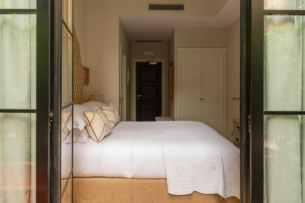 房间宽敞,带花园景观,位于米兰市中心
