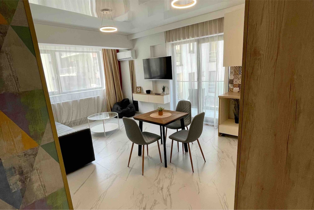 Sunrise Deko Apartment is new unit - with lateral view to the sea at a high & quite floor ✔ Completely new unit, perfect for a family with two children or for 4 adults. ✔ Full equipped kitchen, washing machine ✔ The beach area is one of the best in Mamaia Nord ✔ In close proximity you can find diverse restaurants and beach bars. ✔ Within walking distance of the new supermarket Lidl Mamaia Nord. ✔ Nespresso coffee on the house! Looking forward to hosting you!