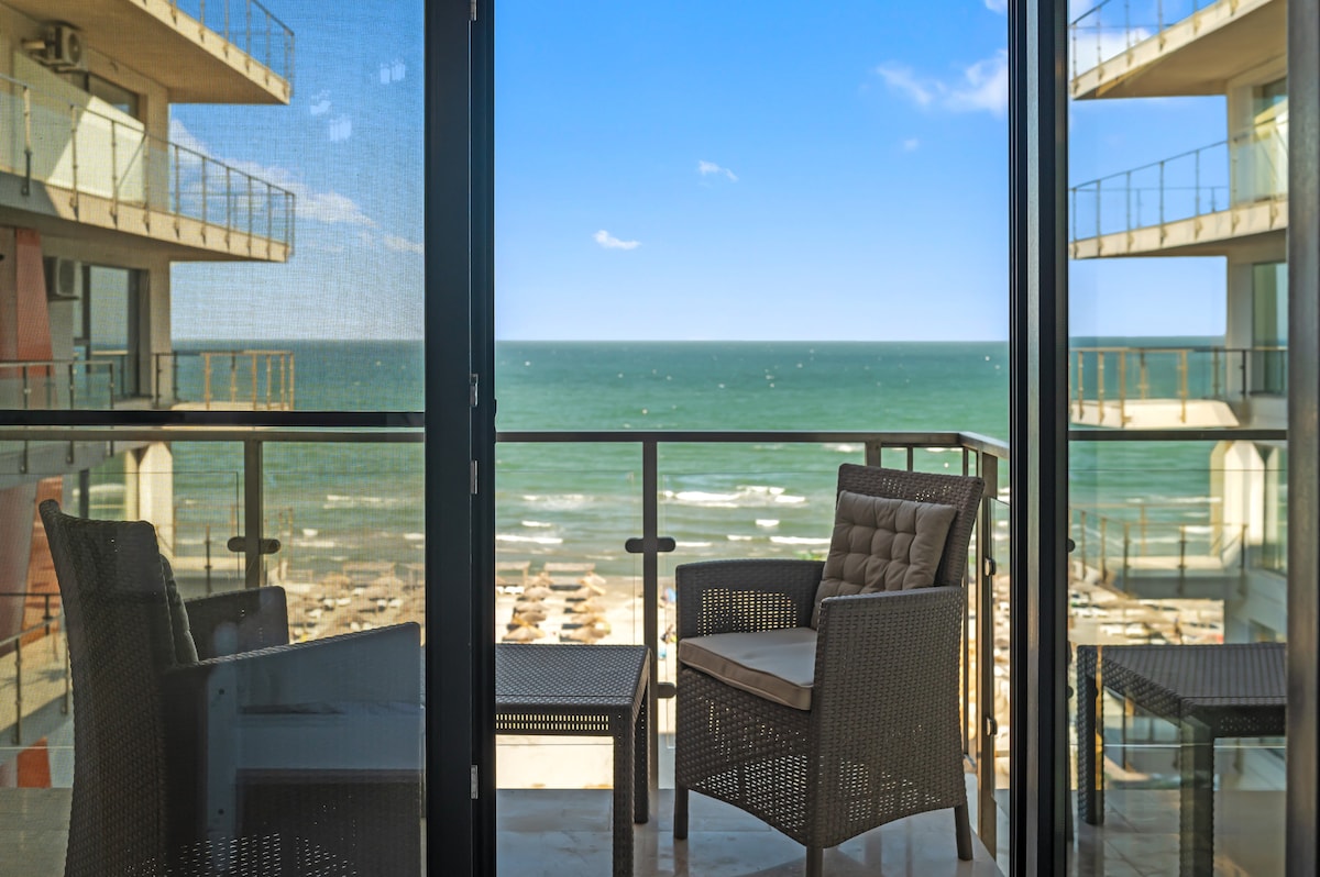 Enjoy a stylish experience in this home, located on the shores of the Black Sea in the first line at the beach! Live your vacation in a refined and relaxing style! In the evening, from the terrace you can hear the sound of the waves hitting the shore! In this area, the beach is fine sand, has not been widened and the entrance to the water is smooth, suitable and safe for children and adults, and the bathing area up to the buoy is about 40m. There are plenty of shops and restaurants nearby .