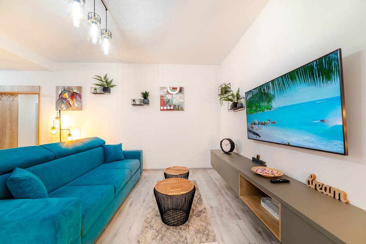 The MALI BY THE LAKE Apartment is a smart apartment that offers you state-of-the-art SMART HOME technologies, providing you with premium conditions for your comfort. Perfect for a romantic getaway or a family vacation. It's located in the North of Mamaia, considered the most beautiful area, walking distance to all the top locations such as LOFT, FRATELLI, and NUBA beaches while being sound-proof. From the apartment's terrace, you can admire the most stunning view of the sun setting on the lake.