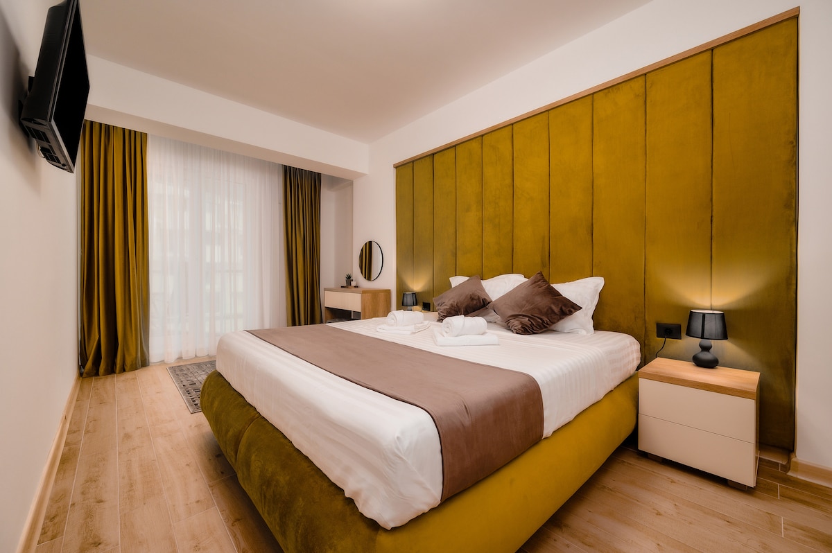 Modern Apartment with Sea View – Alezzi Beach Resort, Mamaia Nord Enjoy your stay in this stylish and fully equipped apartment, located in the exclusive Alezzi Beach Resort, just 1 minute away from the beach and popular beach bars like Nuba, Fratelli, and Breeze.