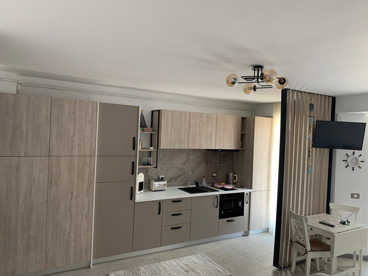 Christian Apartment is situated in Odyssey by Alezzi Resort ( the newest resort open 2025). This cozy one bedroom apartment offers accommodation for 4 adults or 2 adults and 2 children. The distance to the beach is around 300 meters and the beach area is one of the most wanted in Mamaia Nord Resort. In walking distance from the beach, restaurants. * Free access to SPA& playground * Free access to pools all year long & fitness area * Free wi-fi & parking * Coffee/Water on us! * 24/7 Support