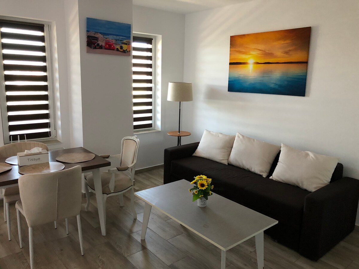 Apartamentul este situat intr-un imobil nou, foarte frumos mobilat, parfumat si primitor. In apropiere se gasesc atat supermarketuri, cat si plaja, iar pentru cei care vor si distractie, la o distanta de cateva sute de metri in plus este zona cluburilor, doar sa retineti drumul inapoi🥳.