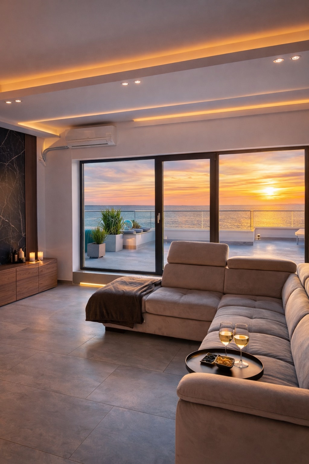 The MALI BY THE LAKE Apartment is a smart apartment that offers you state-of-the-art SMART HOME technologies, providing you with premium conditions for your comfort. Perfect for a romantic getaway or a family vacation. It's located in the North of Mamaia, considered the most beautiful area, walking distance to all the top locations such as LOFT, FRATELLI, and NUBA beaches while being sound-proof. From the apartment's terrace, you can admire the most stunning view of the sun setting on the lake.