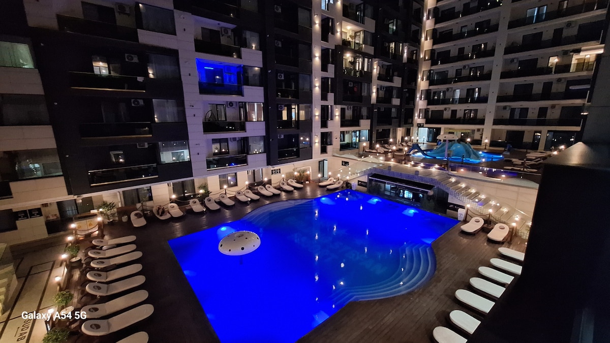 LONG TERM availeble-monthly price Kick back and relax in this stylish space! Imagine waking up looking at the stunning view of the sea. Imagine the whispering of the sound of the waves every evening. Imagine having a pool & pool snack & bar availeble all your vacation. Imagine you can enjoy 5 a la carte restaurants at walking distance. You can have all that! A freshly renovated Modern style apartment in a 5 star beachfront resort right in the heart of Mamaia Nord - most wanted beach in Romania.