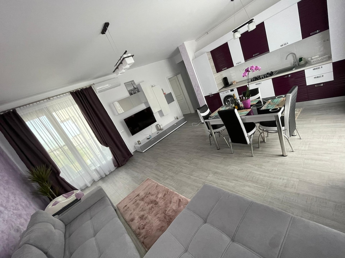 The 2‑room apartment located just 330 m from the sea, in the heart of Mamaia Nord, offers the ideal setting for families or friends group who want a relaxing holiday close to all major attractions. The fact that you are hosted by a superhost, attentive to details and to each guest’s needs, gives you the guarantee of a successful stay filled with beautiful moments and good value. The complex features a seasonal swimming pool, generous green areas, plenty of open space for play and relaxation.