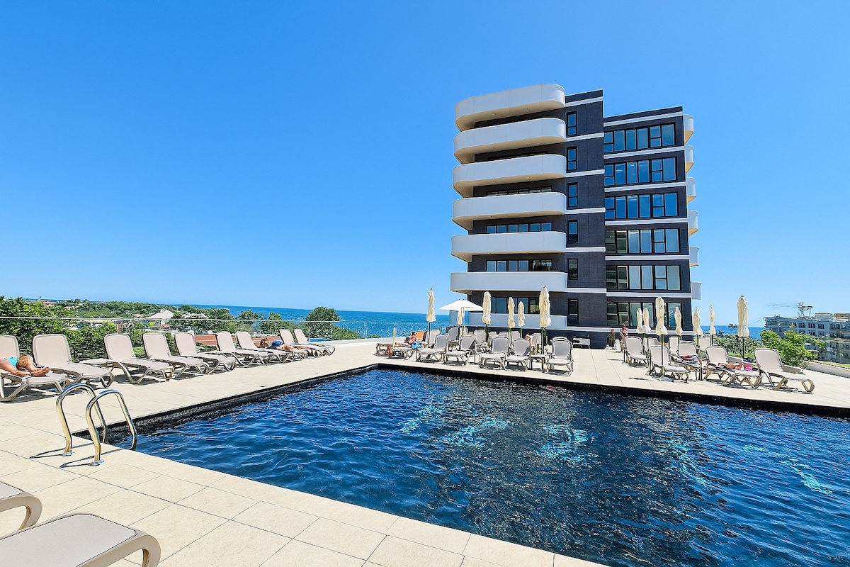 Distrează-te cu întreaga familie în acest loc elegant. Relaxati-va pe balconul cu vedere la mare. Apartamentul este situat intr-un resort pe primul rand de cladiri la mare, la 5 metri de plaja. Dispunem de parcare proprie, cu bariera automata.