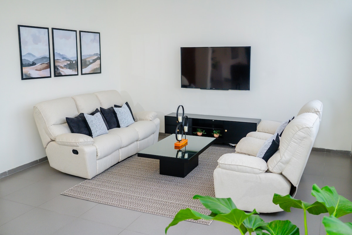 Accommodates up to 4 people: intended for families, couples and ladies. Two bedrooms with AC, en-suite bathrooms (with hot water), a comfortable living room, dining, kitchen, WiFi, private entrance, and parking for one car. Easy access to public transport, the airport (~1 hour), and centre of Colombo (~20 mins). 5 min walk to supermarkets and shops and a 5 min drive to restaurants.