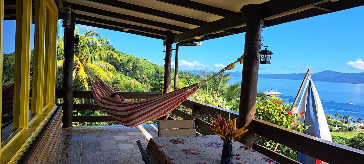 Sensational location looking over Savusavu town to the beautiful Savusavu Bay. EDNA'S PLACE has three air-conditioned bedrooms. Living room with smart tv loaded with netflix and free wi-fi . Full kitchen and laundry facilities. Spacious verandas on three sides of the house for dining or relaxing in private. Beautiful landscaped gardens. Private carpark. Peaceful and secluded but just five minutes walk to town. Equally suitable for families, a group of friends, or company accommodation.