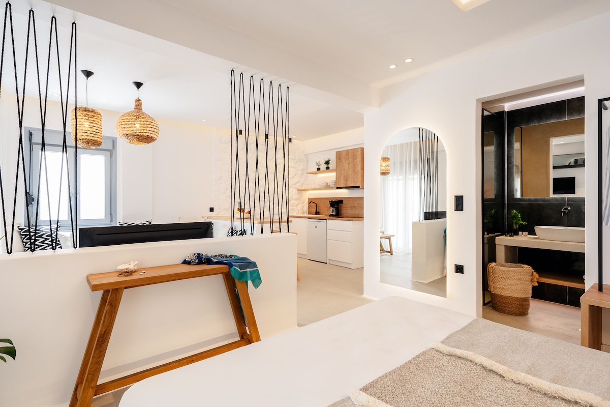 Nested in Naxos Town with stunning views out to the Aegean Sea we offer out guests the opportunity of an exclusive upretentions relaxing experience. Within easy reach from island’s famous PORTARA and Venetian Castle. Our philosophy is to offer first-rate hospitality coupled with unrivaled privacy. Much more than a home our deluxe suite offers supreme comfort combined with elegance style and unique Greek hospitality. it’ s warm minimal lines create a relaxing atmosphere.