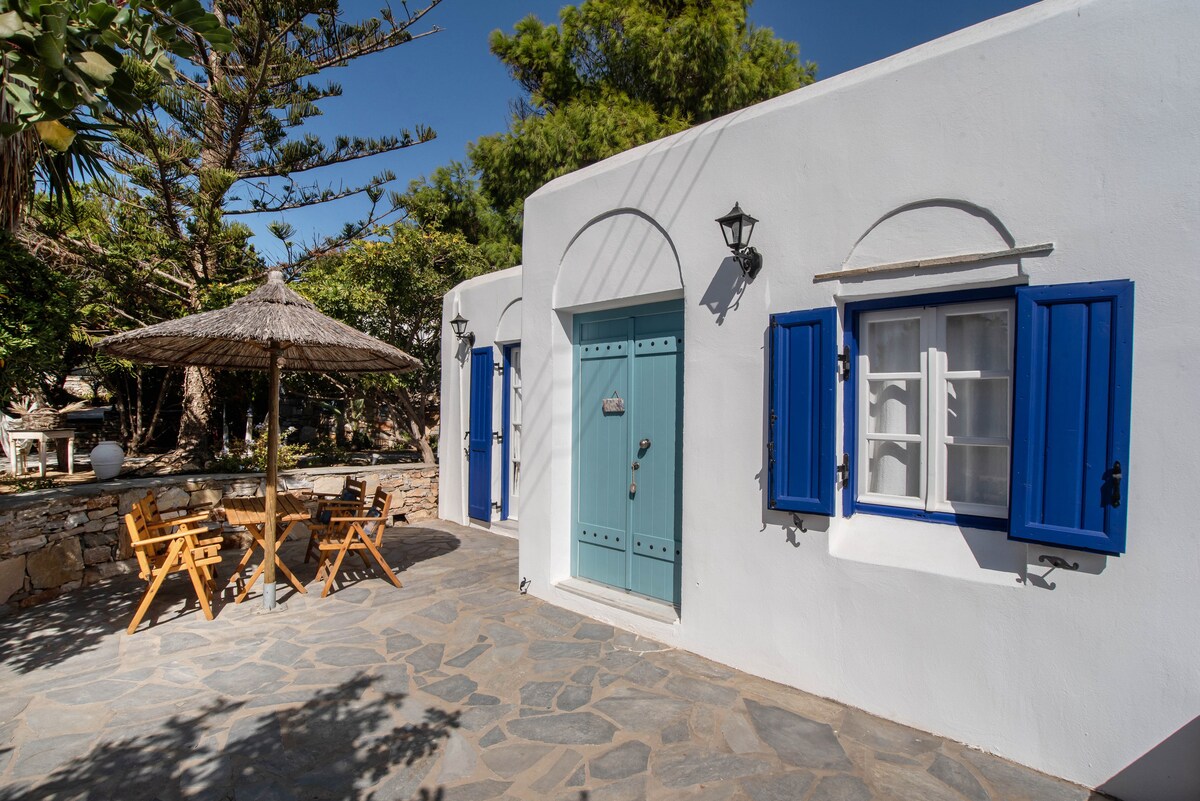 Our place is 1.2 km from the beautiful beach of Saint George and 1.8 km away from the island centre. This (75 m2) apartment is one of the three in an idyllic environment. Λόγοι που θα σας αρέσει ο χώρος μου: η τοποθεσία, το περιβάλλον και οι άνθρωποι. Ο χώρος μου είναι κατάλληλος για ζευγάρια, επαγγελματίες ταξιδιώτες και οικογένειες (με παιδιά).