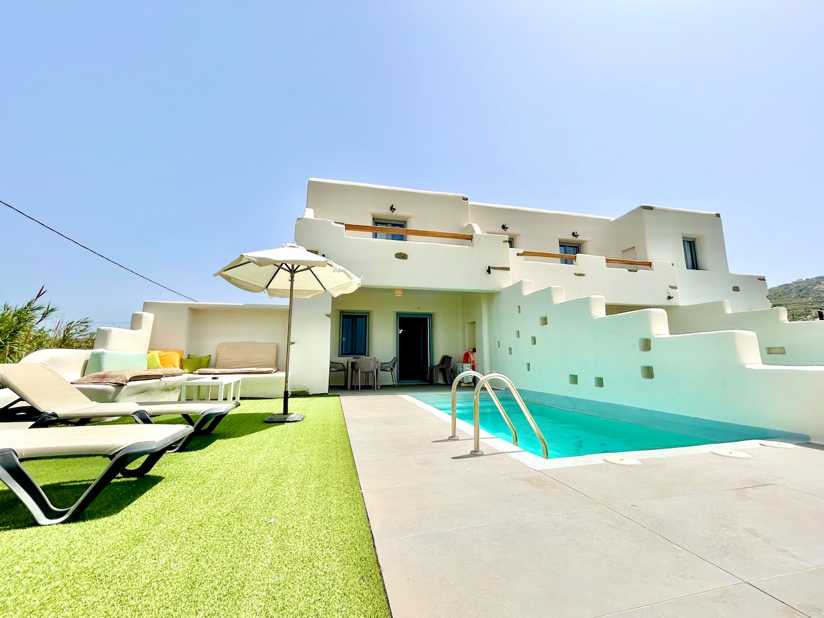 Villa Arismari is located on a serene hillside, surrounded by natural boulders, overlooking the beautiful coast of Orkos. We have a breathtaking panoramic view of the Aegean Sea and our neighboring island of Paros. We are situated between the main beach and smaller bays of Orkos. While enjoying the view that Villa Arismari offers prepare to take your most incredible selfies . Villa Arismari is a beautifully designed villa of Cycladic minimal architecture.