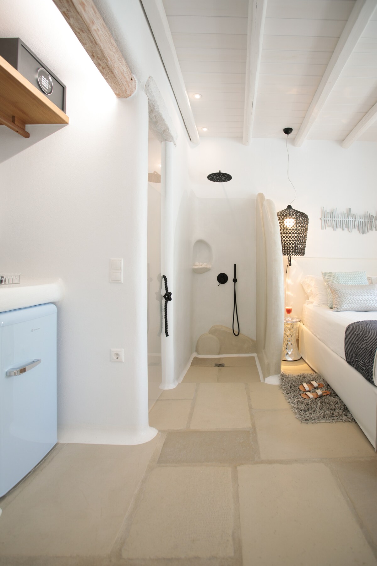 The Mythos Suite is a brand new, quiet, luxury suite with private Jacuzzi in the centre of Naxos, which can accommodate 2 people on the built-in queen size bed and 1 extra person on the sofa bed. Its comfort and luxury are harmoniously combined with the Cycladic architecture, providing guests with unique moments of relaxation and tranquility on the beautiful island.