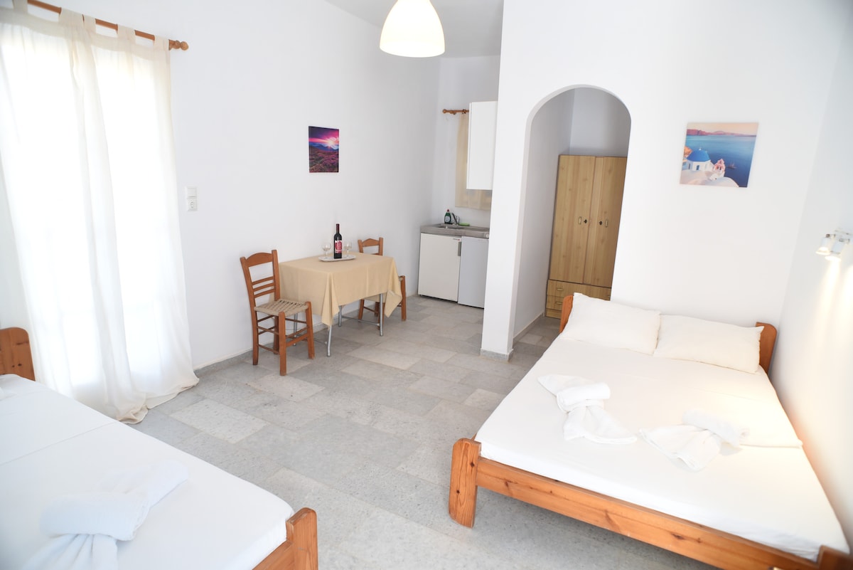 Margo Studios is a family-owned, locally managed guesthouse, operated traditionally in the Naxian hospitality style. It has been awarded several times for the "Value for Money" category and its reviews about cleanliness and customer service are exquisite. Owned by Naxos Margo Property Collection a family with over 30 years of experience in authentic Naxian hospitality! It is located 700 m from the port, making it easy to move among the old and modern part of Naxos town and S. George beach.