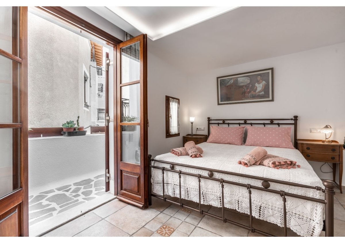 With a view of the city, the castle and the old town of Naxos, the roof garden of the accommodation will offer you unforgettable images, especially at sunset. The accommodation is located right in the center of town, with easy access on foot to the most important attractions of Chora, the Temple of Apollo (Portara), the Castle of Naxos and the Archaeological Museum of Naxos, as well as shops and more. It is fully equipped with everything you need to have a comfortable and beautiful stay!