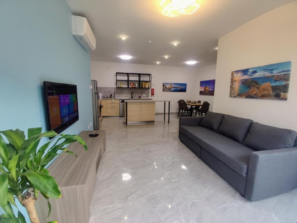 The Duplex Penthouse (100m2) is located in a quiet street off Balluta Bay St Julians, reachable on foot in only 5mins. Enjoy a lovely terrace with Valletta views. We live across the road so we know the area well - there are lots of great restaurants and a lovely seaside walk. You'll live like a local, be close to the gorgeous blue sea and nightlife. Bus stop is 1min away. You’ll love the natural light, air con, free sparkling wine, fruit, nibbles, tea&coffee and more. Great for families of 4+1.