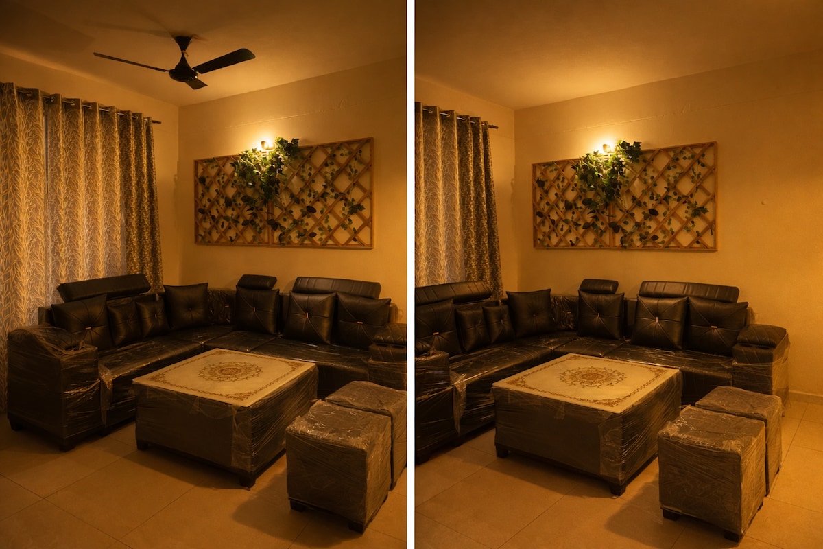 ✨Couple & Family-Friendly 3BHK | WiFi |43" LED TV✨ Welcome to your home away from home! • This spacious and modern 3BHK apartment is perfect for families, couples, friends, solo travelers, or business guests looking for comfort and convenience. •Cozy Living Room with a 43" LED TV for movie nights • Free Wi-Fi • Fully Equipped Kitchen for a homely experience •3 Bedrooms with 2 Attached Bathrooms for comfort • Independent Entry & Inverter Backup for a hassle-free stay