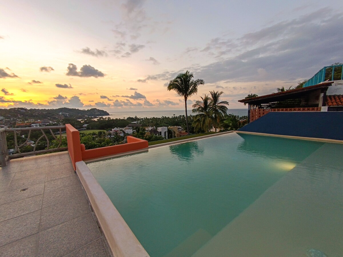 Villas ChulaVista. Welcome to your private apartment with 2 bedrooms, a kitchen, a terrace and a living room that connects the 2 bedrooms (each with its own bathroom). It's on the third floor with high ceiling and a palapa. It has Smart TV and Wi fi Our little hotel is set on the hill 7 min away from the centre with the most beautiful view over the mountains. We have a reception, a pool, and lounge area, and we'll make sure you'll have the best stay in Sayulita!
