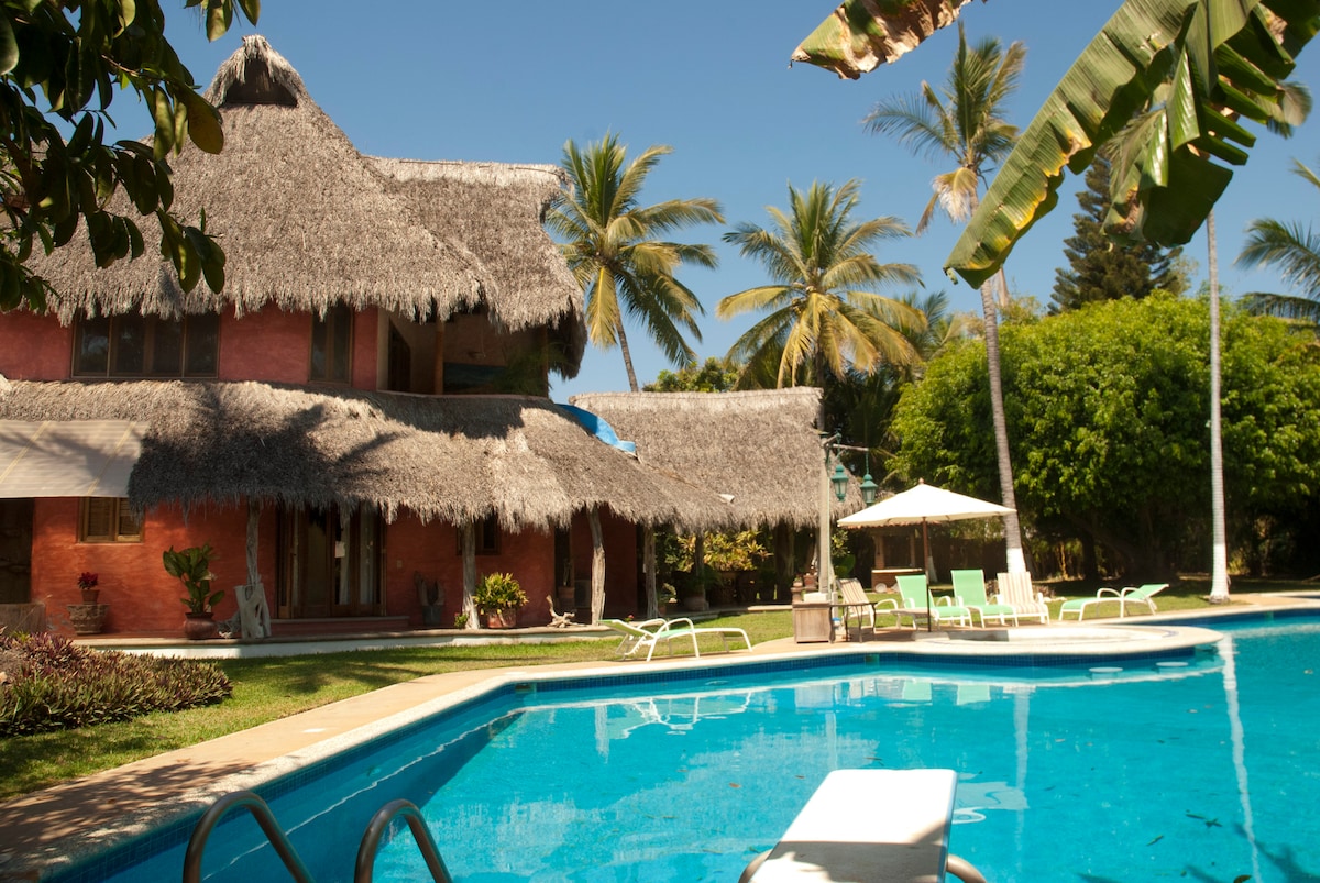 Situated right on the beautiful Pacific Ocean, Casa Hoy features a 25 meter pool, outdoor dining and incredible sunsets. This environment in conducive to relaxation, romantic dining with detailed attention given to creating a most memorable stay. We are conveniently located 3 doors down from Casa Mañana Hotel and we are a quick drive to Aticama. San Blas is a 22 minute scenic drive. Playa Los Cocos remains a hidden paradise. During summer/rainy season the beach access is limited.