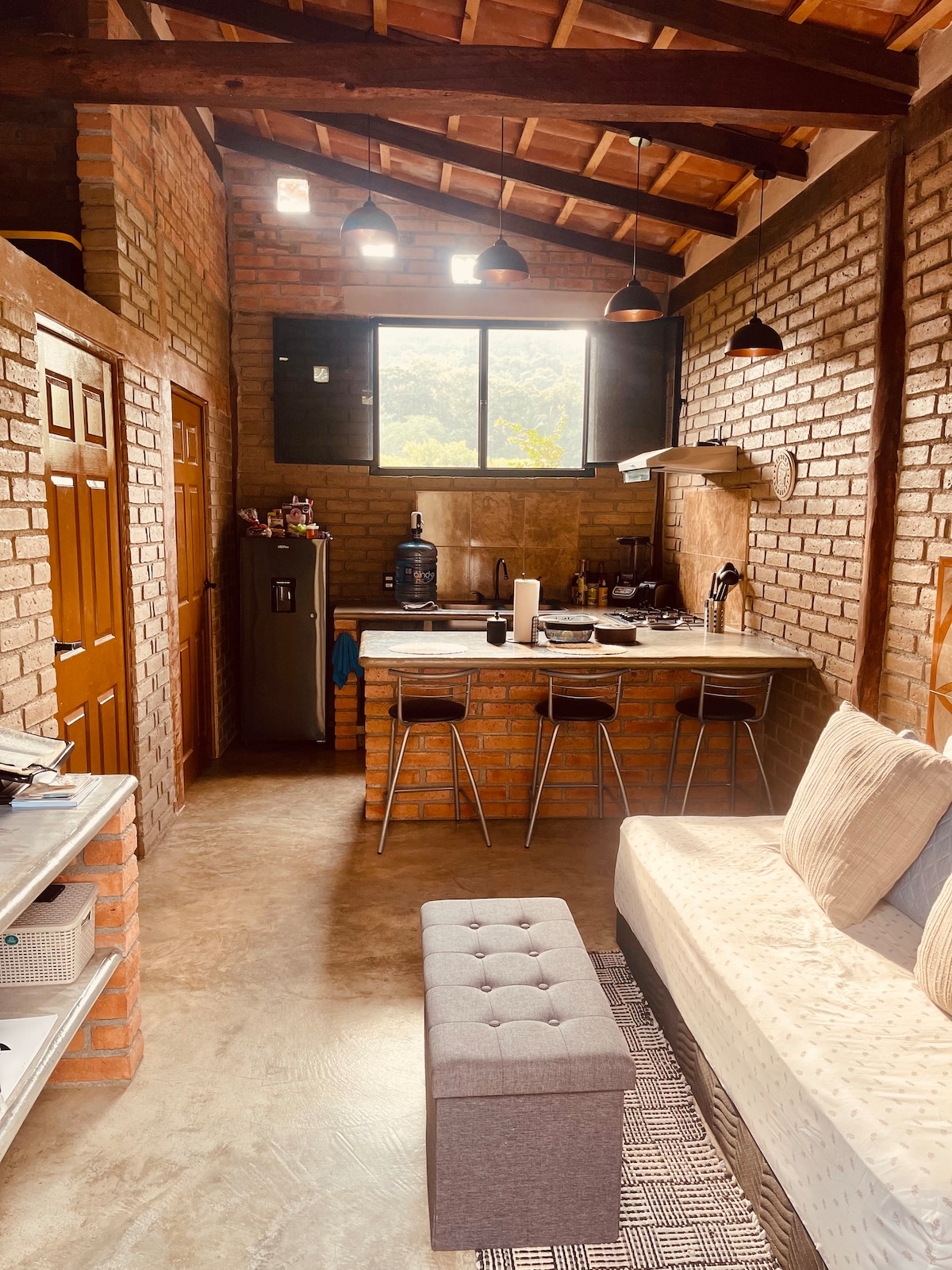 Rancho La Querencia is located between the beautiful Santa Maria del Oro lake (5 minutes by car or 20 minutes by foot) and the waterfalls of El Real (a 10 minute ride) This is the most comfortable and spacious of the 5 exclusive accommodations surrounded by the well tended gardens. It has A/C, fast wi-fi Internet and all amenities. It is very private, and less expensive than lakeside accommodation. It is especially ideal for long stays, lodging in family or with your partner, or on honeymoon