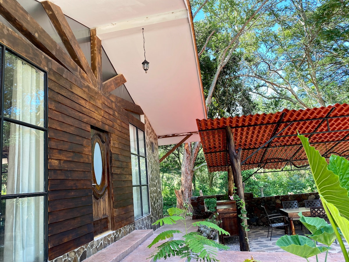 Cómodo bungalow estilo cabaña, ideal para los huéspedes que buscan conectar con la naturaleza y desconectarse de la cotidianidad. Ofrece acceso a un arroyo que conecta a una hermosa playa; este espacio te permite convivir con todos los elementos de la naturaleza. Es importante señalar que la Cabaña no se encuentra justo frente a la playa, son 80 mts aproximadamente caminando.