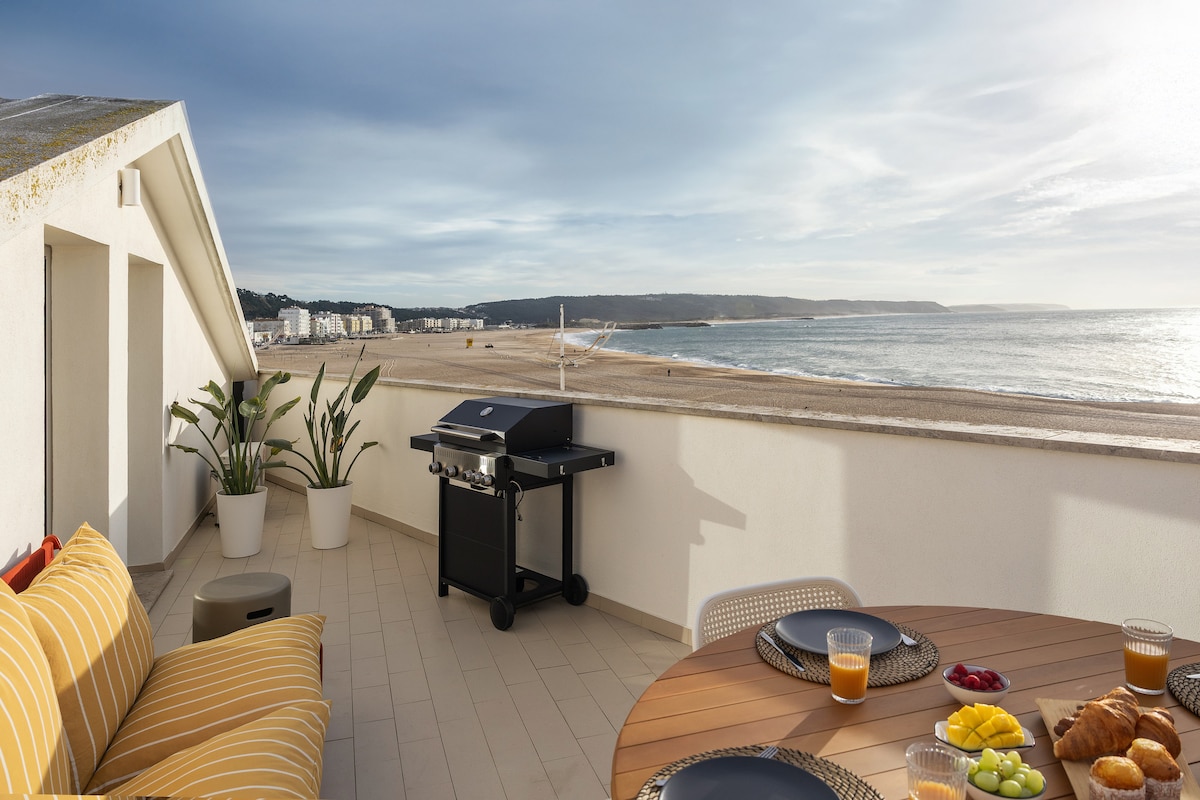 Wake up to stunning ocean views in this modern beachfront apartment in the heart of Nazaré. Ideal for up to 4 guests, this recently renovated retreat is just steps from the beach and lively promenade. Enjoy unforgettable Atlantic sunsets from your private balcony, a fully equipped kitchen, and air-conditioned comfort after a day by the sea. Perfect for surf, seafood, and relaxing seaside moments in Portugal’s most iconic fishing village.