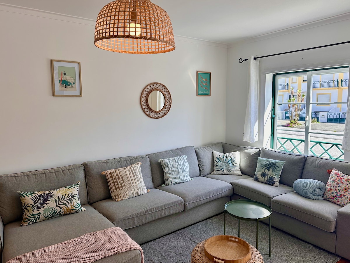 Moradia a 850m da praia e demora 10 minutos a pé , se for de carro demora cerca de 4 minutos. 3 Quartos , 3 casas de banho, cozinha sala de refeições e casa de jantar e sala comum. Cozinha equipada, quintal mesas e cadeiras e churrasqueira para usufruir melhor da sua estádia. Este preço é pela moradia toda.