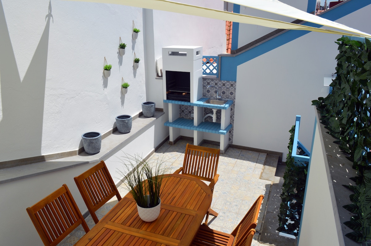 Última casa com pátio de antigos pescadores no centro da vila, entre as ruas estreitas e direcionadas à praia no meio das vivências dos restantes moradores locais .Este espaço especial fica perto de tudo ao redor desde acesso a pé a praia e a marginal frente ao mar, no lado esquerdo o museu vivo das senhoras que colocam o peixe a secar ao sol do lado direito acesso a pé até ao elevador que vos levará ao sítio ,lugar das ondas grandes, deixe se perder nas ruas labirínticas da vila e desfrute!
