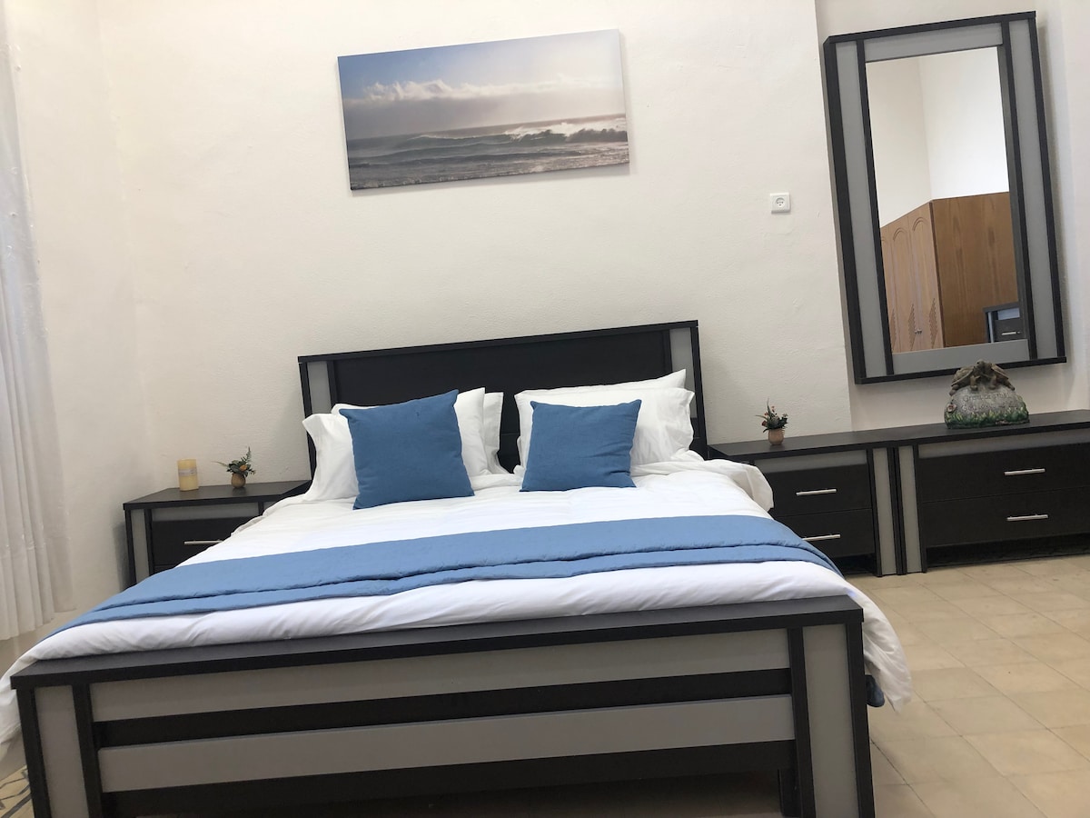 Forget your worries in this spacious and serene space. It is the upper floor of a private house with a private entrance. Very easy access from the street. Plenty of free parking. You will definitely enjoy the balcony off the living room overlooking the Galilee mountains and the northern sea shore. In the living room there is a large, 55”, TV with Netflix, Israeli channels and more. Self check in (at 3:00 pm) and checkout (at 11 am). Please let us know if you will need one or two bedrooms.
