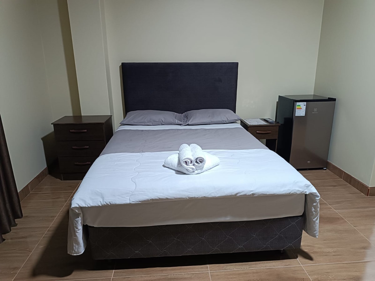 Hotel de estreno con modernas y confortables habitaciones, equipadas con cama de 2 plazas, escritorio, closet, televisor con cable, baño privado con agua caliente las 24 horas al día y conexión a internet con WiFi; además, cuenta con una zona de coworking y monitoreo de seguridad con cámaras las 24 horas al día.
