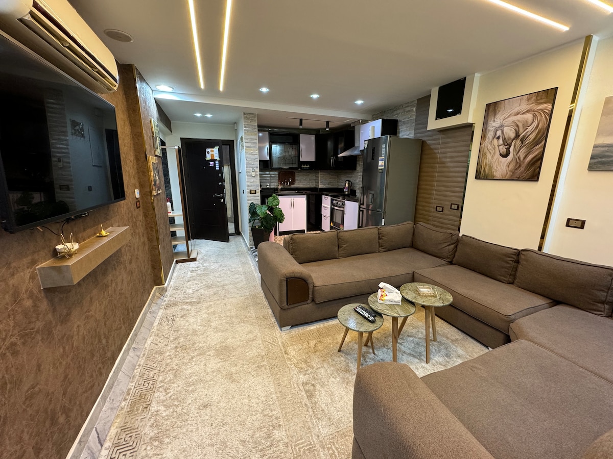 Unwind in this luxurious rooftop retreat with panoramic views of the Great Pyramids. Enjoy royal comfort in a beautifully furnished space blending modern elegance and Egyptian charm. Just 12 minutes from the new Pyramid Gate and 10 minutes from the Grand Egyptian Museum, it’s perfectly located for explorers. The fully equipped kitchen and expansive terrace make it an unforgettable stay.