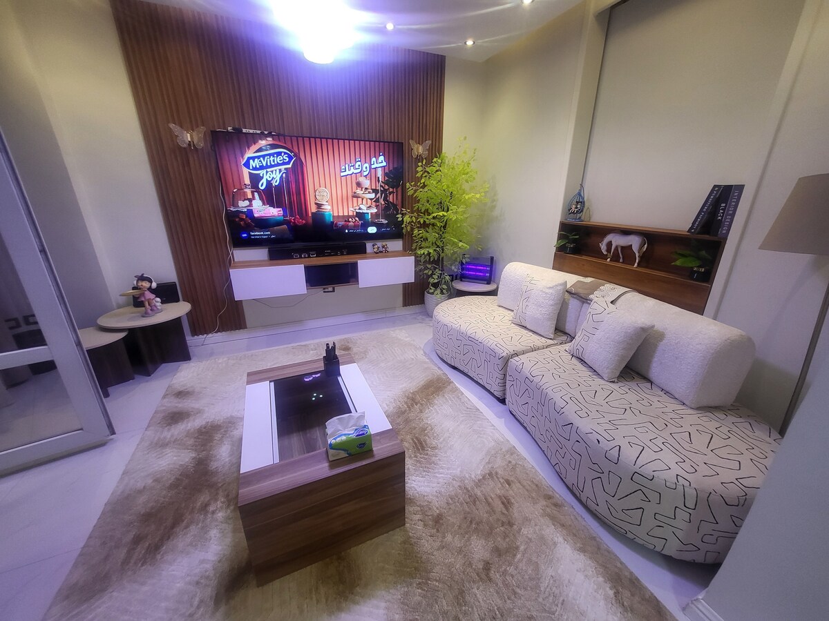 Unbeatable location (HEART OF NEW CAIRO) In one kattamya compound it’s a premium community -five minutes from 5A by waterway, U venues, cairo festival mall, district 5, El malahy, Nasr city -It’s 15 minutes away from Cairo airport, 20 minutes from ZAMALEK AND NILE RIVER -Markets , cafes and restaurants steps away -I genuinely care about my guests Amenities: -Unlimited internet wifi with high speed -AC, private parking -Elevator -two smart TV 65-43 inches -security cameras and security man