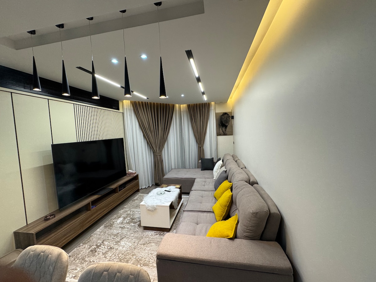 Reconnect with loved ones in this family-friendly place. It is a luxurious place overlooking the pyramids, the face of the Sphinx and the Grand Egyptian Museum. The place is distinguished by the services available around it, such as Orange Market, a pharmacy, a grocery store, a bakery, and a restaurant. It is distinguished by being close to the pyramids, where you can walk to reach it. This place can accommodate a family of 6.
