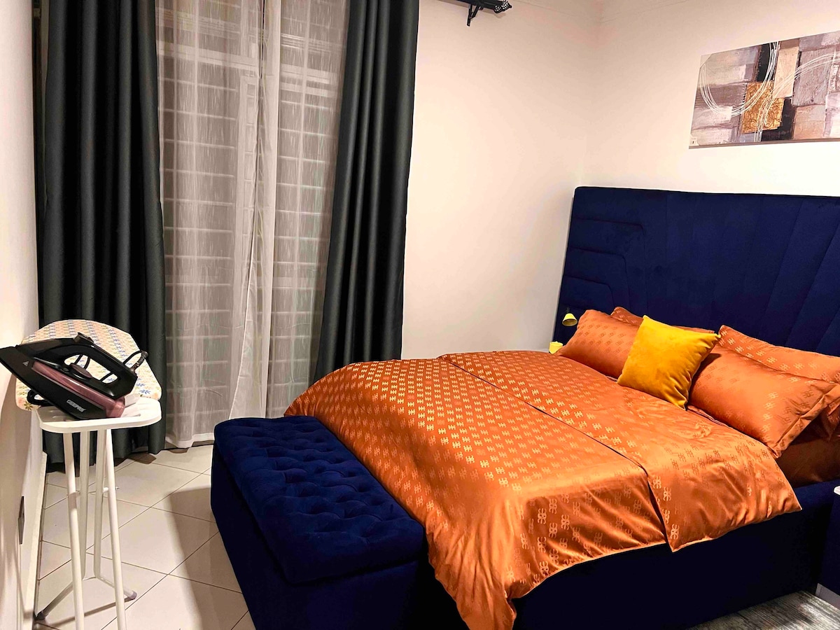 Experience a chic modern 1-bedroom retreat on Bukoto - Kisasi Rd. This fully furnished apartment boasts a spacious layout, king size bed, well-equipped kitchen complete with a coffee maker, blender. It is beautifully designed with stylish décor and top-quality fittings. Our onsite caretaker ensures a clean apt for relaxation and is ready to help with your requests. Located just 5min from Kabira Country Club in an accessible area it's perfect for exploring the city or unwinding after a busy day.