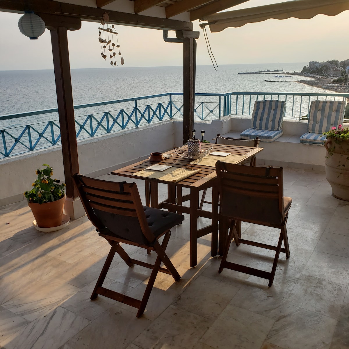 An stunning flat in the top, 2nd floor (only by stairs) , situated right on the water It's a comfortable with big balcony and a breathtaking view! It's located in the city centre and the beach is ideal for families looking for quite holiday.Super markets beach bars and taverns are availiable within walking from the flat. The flat has two bedroom,a living room with a sofa-bed, a fully equipped kitchen, wc and shower. Only 20 minutes drive from the airport and 25 minutes from Thessaloniki!