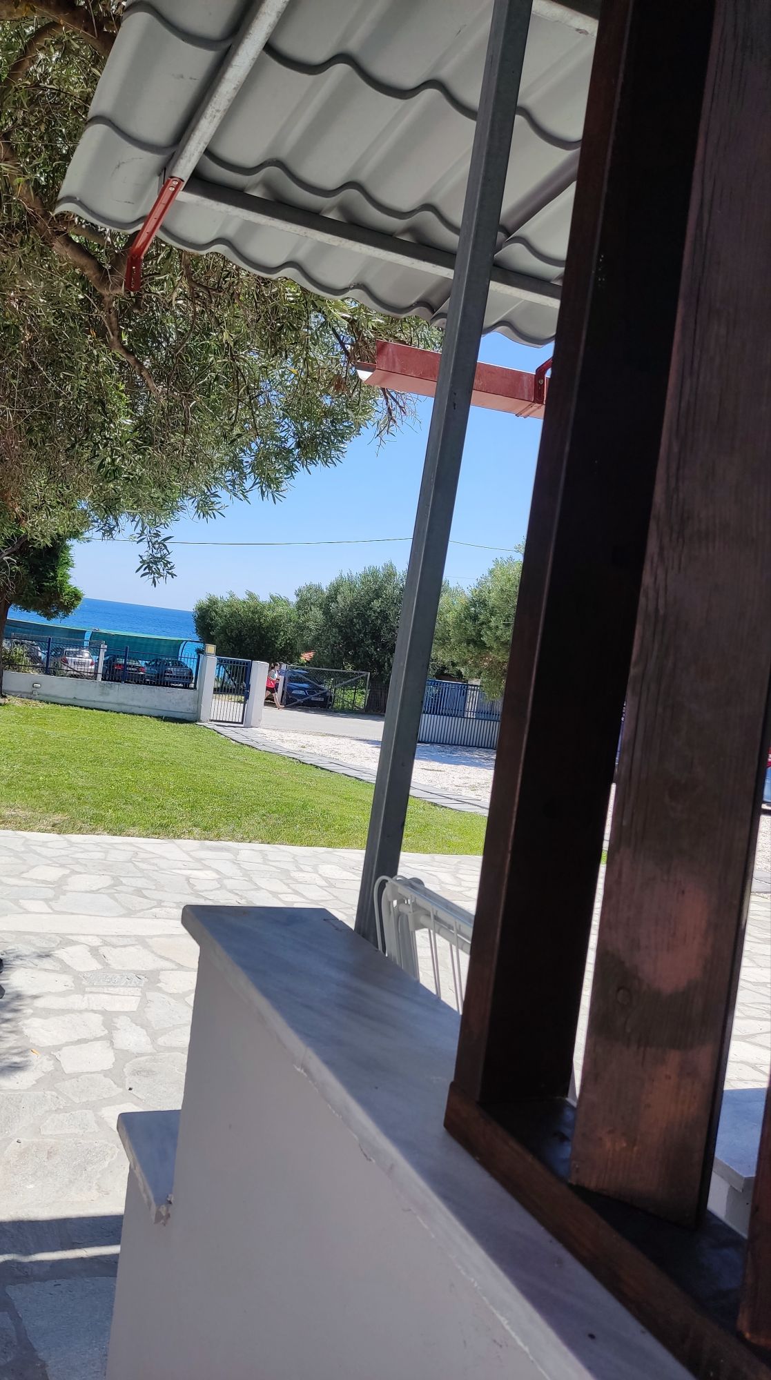 Welcome to our modern and cozy apartment in the heart of Nea Skioni, Halkidiki. Located right in the center of the village. - New apartment - Close to the sea, local taverns, cafes, bakery, pharmacy and supermarkets - Everything you need is within easy reach. - Ideal for couples, though it can comfortably host up to 3 people, with one double bed and one sofa-bed (the sofa is 2m long) - Balcony overlooking the lively central road - Smart lock