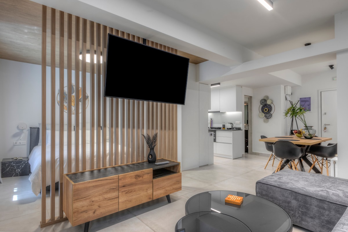 Make a light breakfast in a cozy kitchen with minimalist cabinetry and dine at a charming bistro table on the balcony. In the evening, kick back on a chic sofa and get lost in a book within a stylish, streamlined living room with hip graphic artworks. 3 min walk from SygkrouFix metro station, an 8-min walk from Acropolis Museum. — As the COVID — 19 has grown to pandemic level, we are working to ensure compliance with the latest guidance of hygiene and cleaning. We are taking additional steps for health and safety measures and disinfecting protocols in order to maintain the highest standards. This 40m2 spacious studio with a luxury minimalist design, fully renovated in March 2018, is ideal for couples, small group of friends or couples with a kid who want to enjoy unique holidays in Athens. The open floor plan consists of an entrance area, a fully equipped kitchen, sleeping area with Queen size bed (quality mattress and cotton linen) a comfortable sofa bed and a stylish bathroom with all the amenities you might need during your stay High speed wi-fi, Netflix and basic local channels. Air-conditioning (heat and cold), for the winter there is also central heating system and fireplace We will be at your disposal 24/7 providing you with all the necessary information in order to have a pleasant stay in our sophisticated apartment. Flexible check- in since we provide you the option of self-check- in during night time. - Long stays are possible ask about the rates for a month or longe Set in the historic Koukaki district, the apartment is just an 8-minute walk from the Acropolis museum and a stone’s throw away from some of the city’s most popular historic sites and museums. A vibrant urban wonderland is at your doorstep, with restaurants, bakeries, cafes, and cocktail bars nearby. For reservations more than 10 days we provide one extra cleaning and linen change during the stay for free.