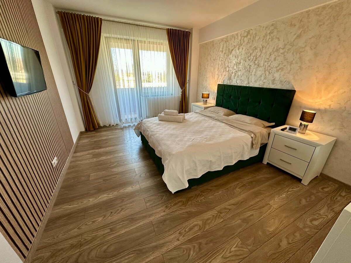 Enjoy a stylish experience at this centrally-located place. This modern 1-bedroom apartment, with fully equipped kitchen, spacious living room with an extendable sofa is just 3 min walk to the city centre and 2km away from the Neamt Citadel.
