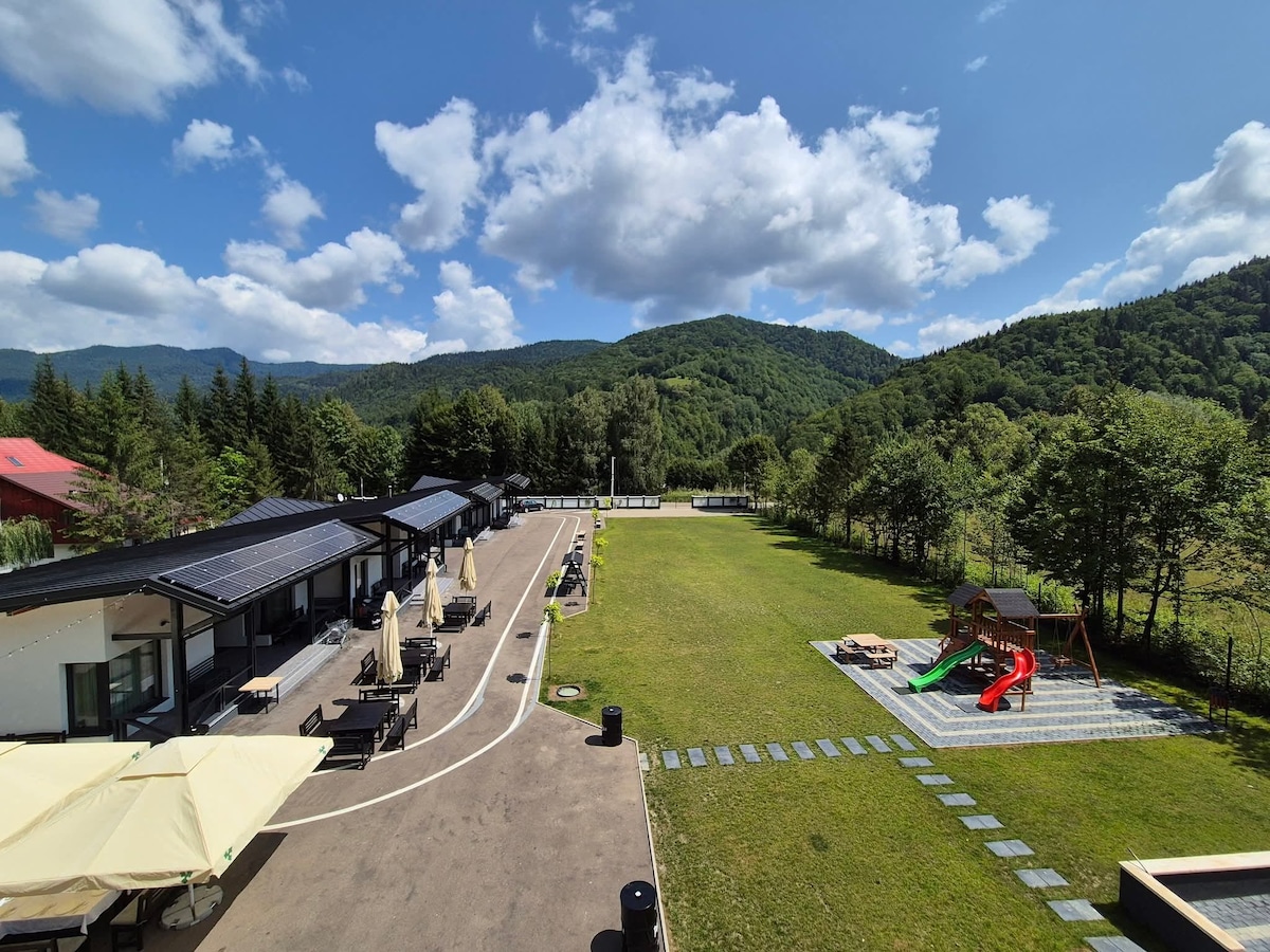 Apartamentul oferă oaspeților un dormitor cu pat dublu, o zonă de relaxare cu canapea extensibila, televizor cu ecran plat, o bucătărie complet utilata, o baie cu dus și articole de toaleta. Proprietatea se afla la 500 m de stația telegondola care traversează orașul, oferind o frumoasă panorama. In imediata apropiere sunt multe obiective istorice si turistice, partia de schi, trasee montane unde se pot desfășura activități de tip hiking. Cel mai apropiat aeroport se afla în Bacău, 60 km.