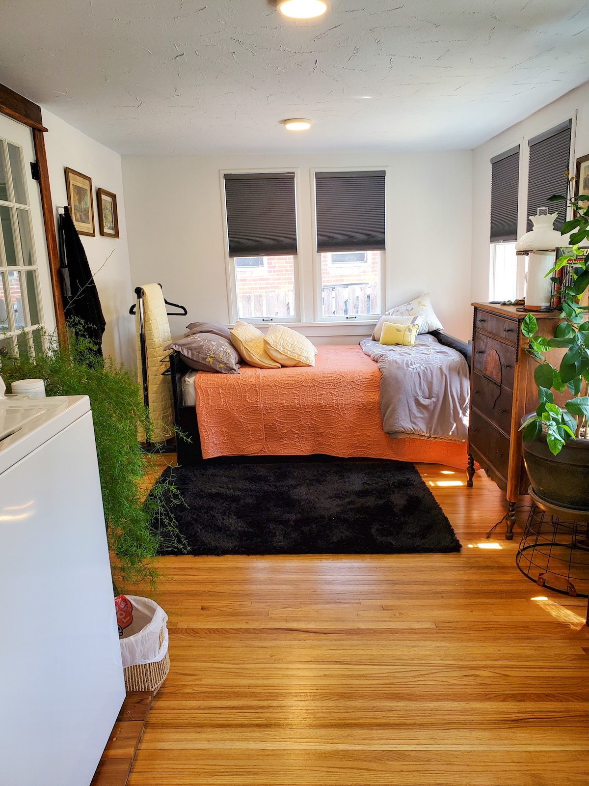 Enjoy a clean and stylish experience in the Juni Suite. Cook all your meals in the well equipped kitchenette, soak it up in the deep bathtub, and stay warm by the fireplace. A queen size memory foam bed and blackout roller shades will help you sleep soundly. The convertible sofa is easy to expand to a full size. Protect your vehicle in the off-street covered parking stall which is only a short walk to the entrance (7 stairs up and 13 down). Close to Union College/Shops.