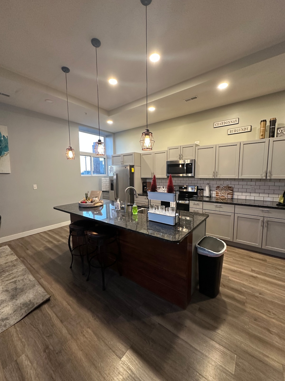 Located in the heart of Downtown Lincoln. You'll enjoy all the comforts of this high-end property which is walking distance to Memorial Stadium, the Lied Center, Pinnacle Bank Arena, and all the Historic Haymarket's restaurants and night life. You will have 24-hr secured access to the building and includes a parking pass to a secure, underground parking garage. Includes a king sized bed, queen sized bed, a twin sized air mattress, and a couch for sleeping.