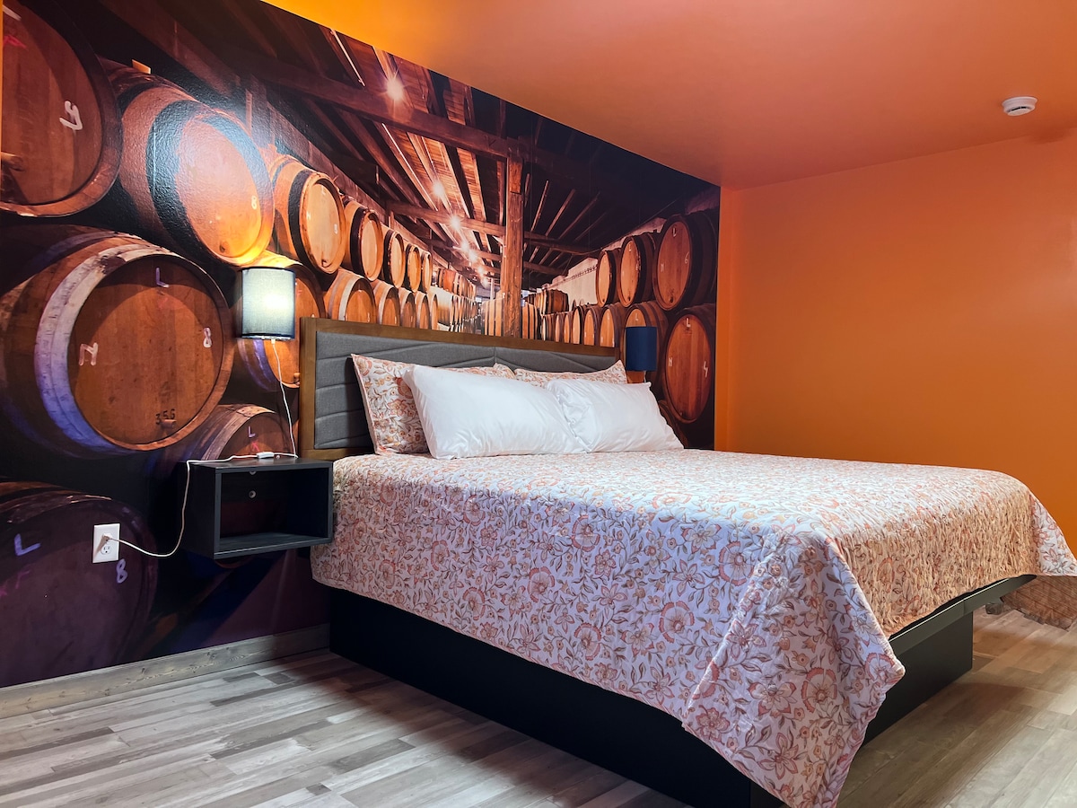 The newly renovated Orchard Motel is a themed room roadside motel along U. S. Route 20. Enjoy easy access to popular shops and restaurants, as well as The Ashfall Fossil Beds and Grove Lake Wildlife Management Area. The BOURBON ROOM features one king bed, a private bathroom with shower, TV, chair, and kitchenette. ** NOTE ** Currently NO WiFi - waiting for it to be trenched to the building and installed. We are offering 10% off the daily rate until then.
