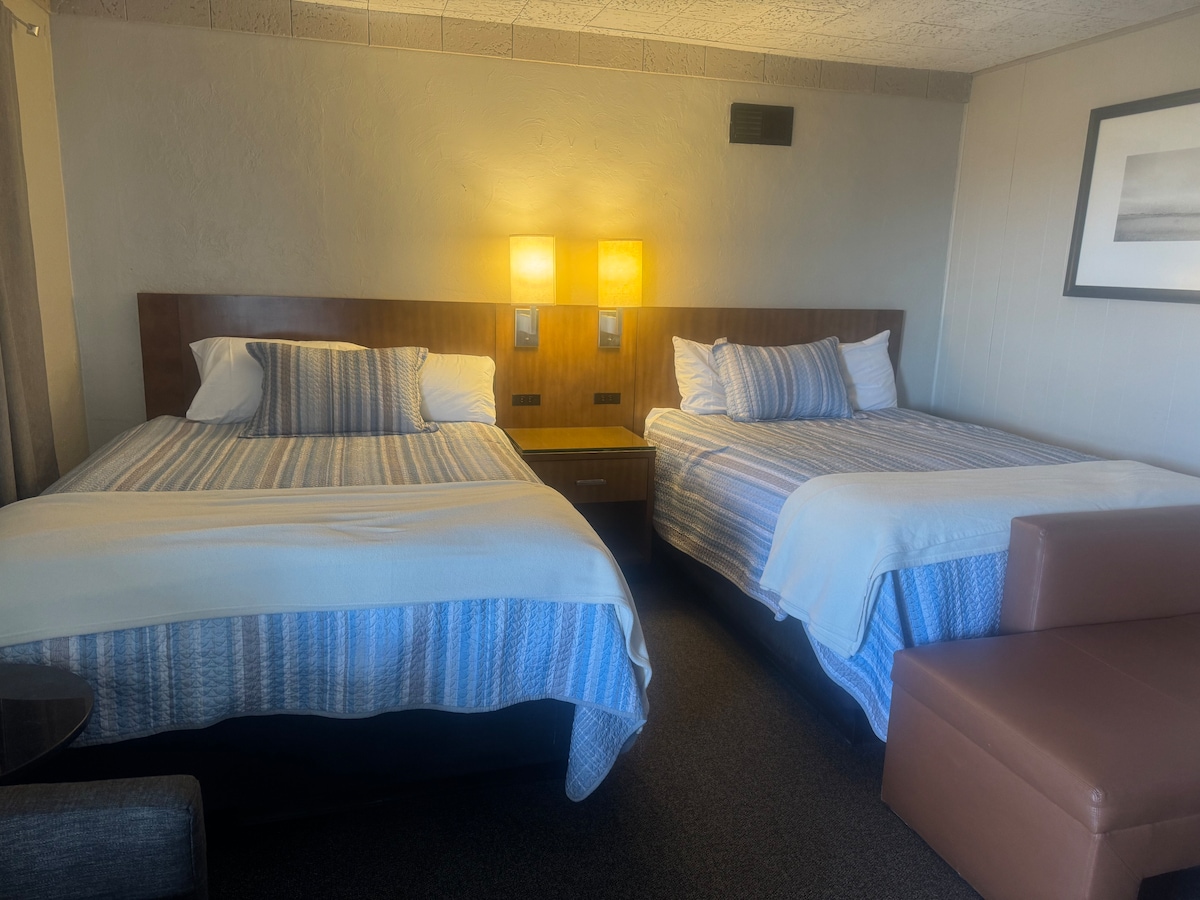You'll enjoy your time at this cheerful getaway.cozy bedroom with 2 Queen bed or 1 Queen bed room .its come with fridge and microwave as well.24 hours Macdonald right next to room .easy access for all restaurant.spacious parking.